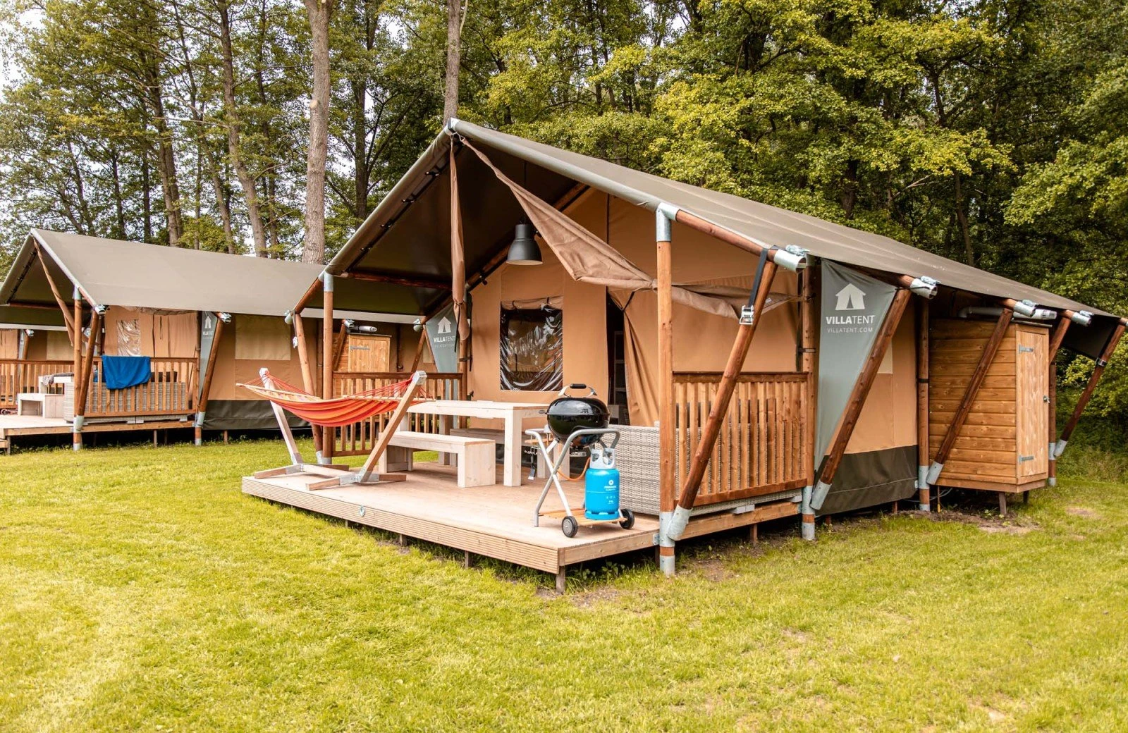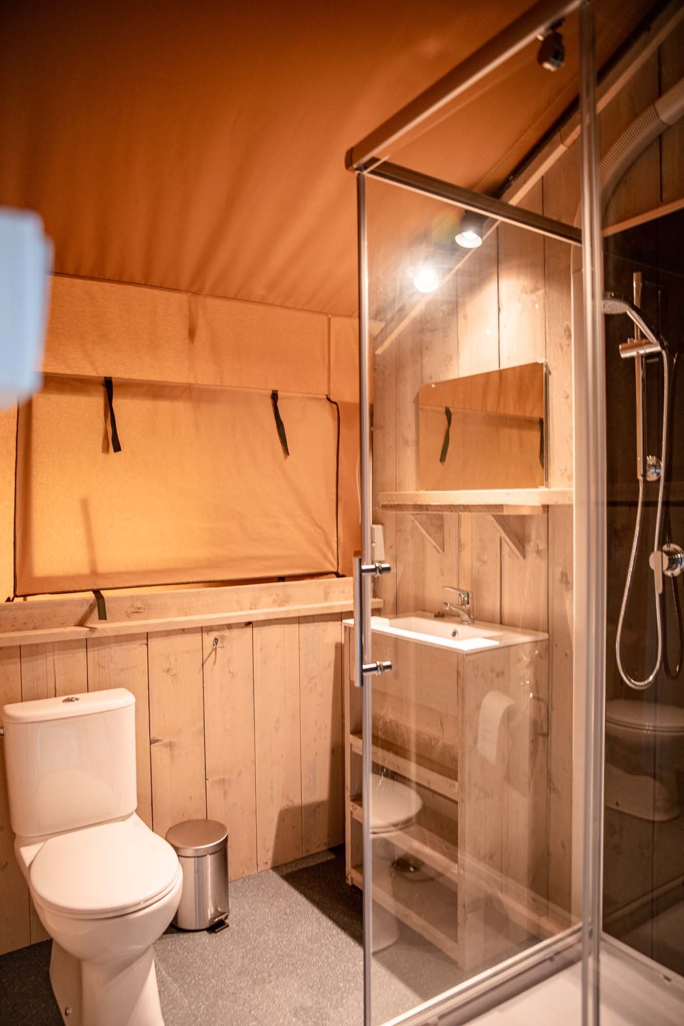 Geniet van een heerlijk verblijf in een unieke glamping tent. Ervaar de luxe tenten, maar ook het campingleven! De Glamping tenten hebben veel extra's zoals een airco, verwarming, een grote veranda, heerlijke bedden en eigen sanitair!