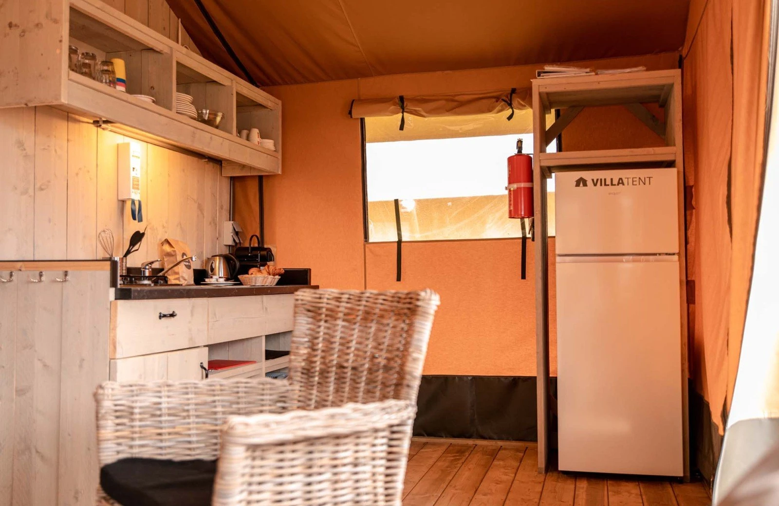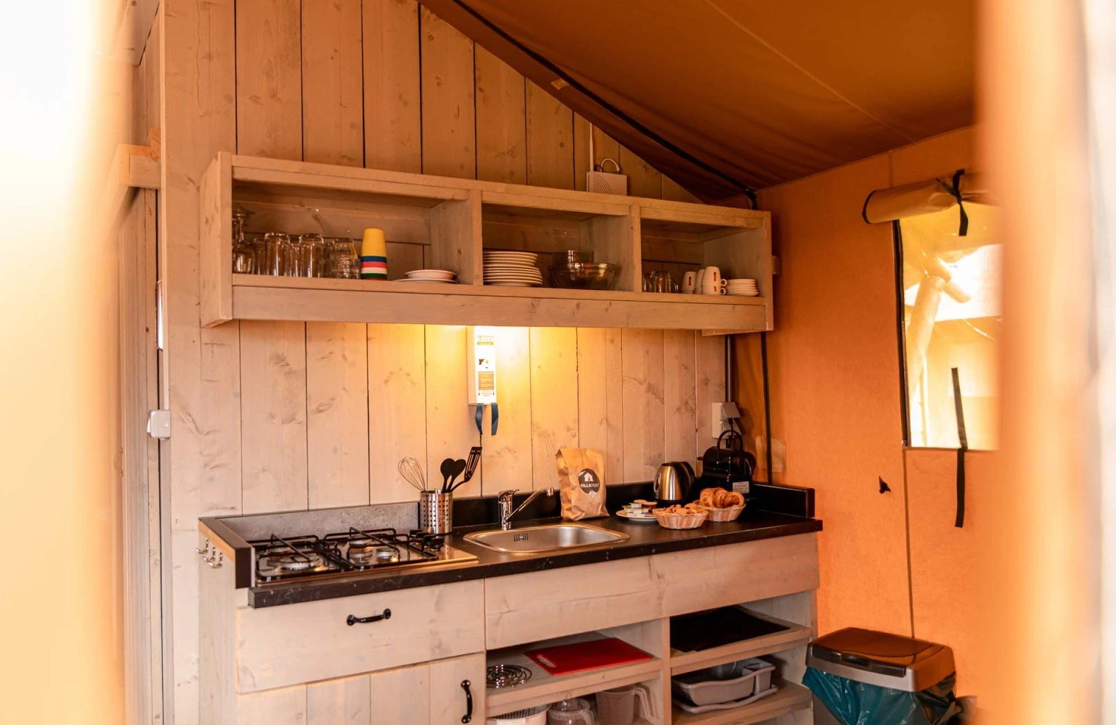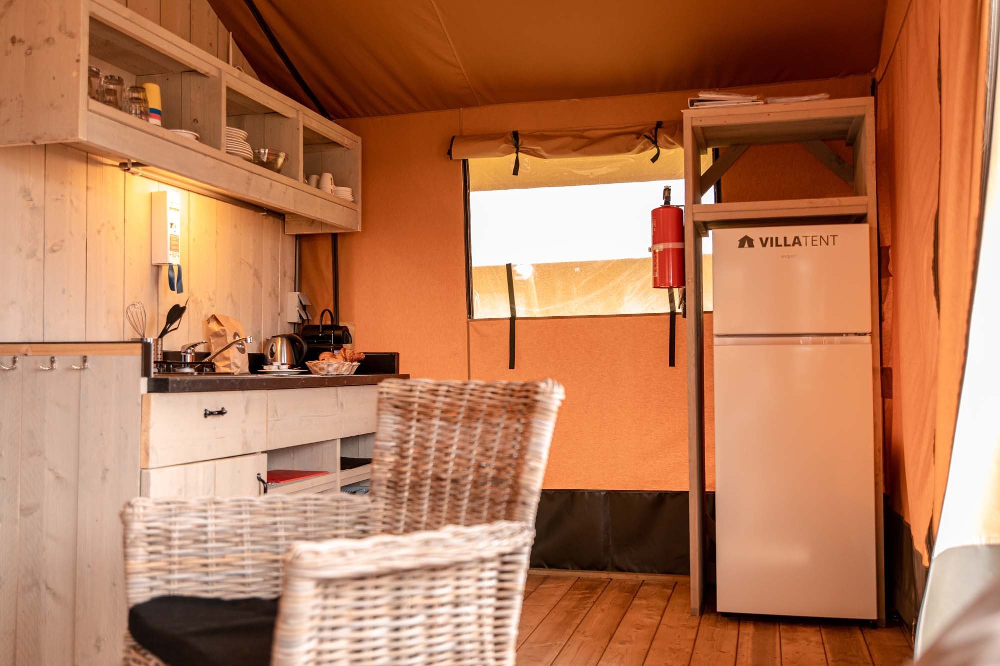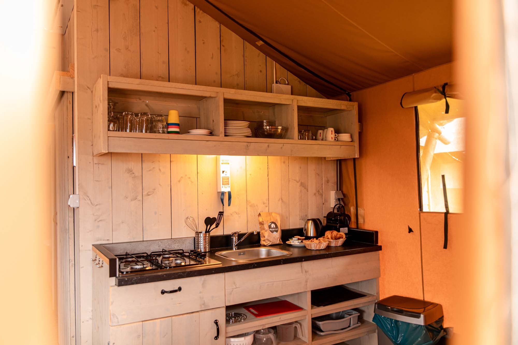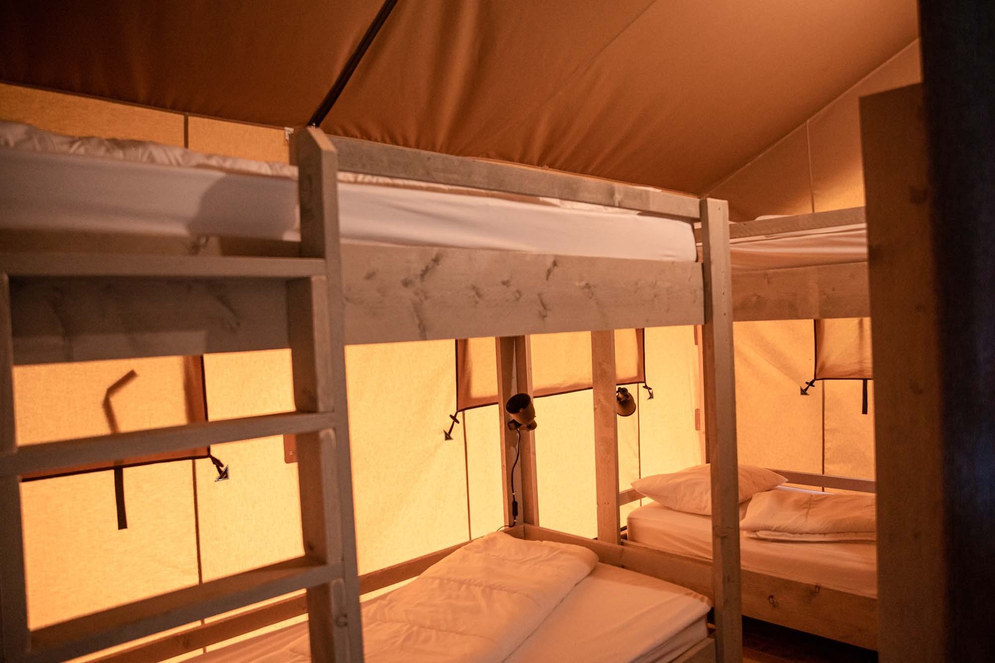 - Beddengoed is inbegrepen bij de Glamping tenten.