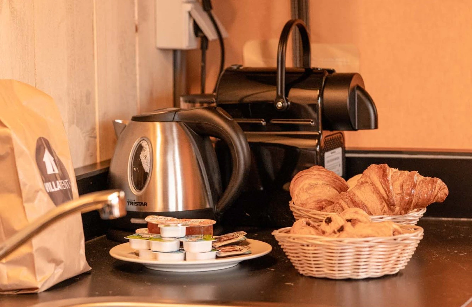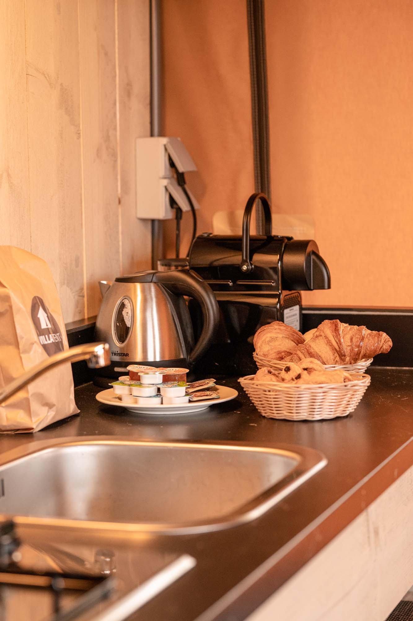 - Keuken met met koelkast, 4-pits gasstel, waterkoker, nespresso apparaat en